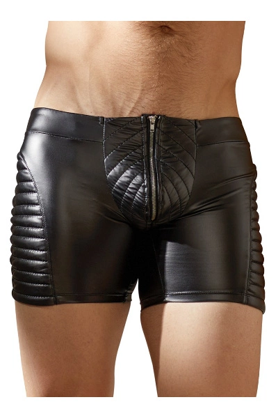 Bikerbroek in matte look met opvallende gestikte delen aan weerszijden en op de buidel. Met gewatteerde ritssluiting aan de voorkant.