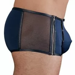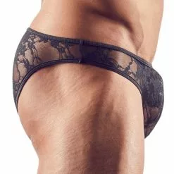 Spannende jockslip met open rug van Svenjoyment Bondage gemaakt van trendy mat look materiaal dat alle juiste delen benadrukt. Aan weerszijden zit een ring voor de meegeleverde handboeien. De handboeien kunnen worden aangepast omdat ze klittenbandsluitingen hebben.