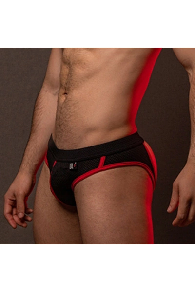 De gekleurde details geven een erotisch, sensueel en sportief tintje. De ophangcup geeft meer steun aan de intieme delen. Ideaal voor thema-seksfeesten en besloten bijeenkomsten.