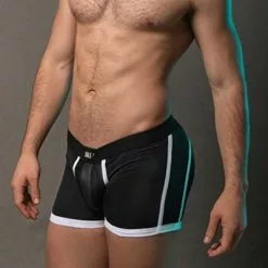 Gemaakt van lycra pacific stof, mesh cup space en leren streep.