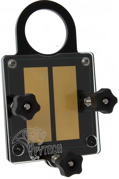 Exclusief gemaakt voor de behoeften van een man en vervaardigd in het VK, heeft het Python-elektro-compressieapparaat 2 vergulde elektrocontactkussens die op twee compressiepanelen zijn bevestigd. Met de zachte penis en ballen er doorheen gegleden, hangen de ballen direct naar beneden in de grip van het verstelbare compressiesysteem. De E-Stim Python kan knijpen en comprimeren, voordat hij het gevoel van electro-spel toevoegt. Pas op als u te hard knijpt, dan kunt u iets heel kostbaars beschadigen!