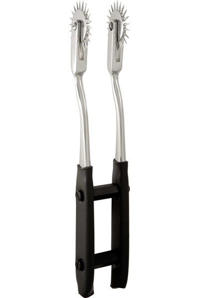 Heb tweekeer zoveel plezier met het ElectraStim dubbele pinnenwiel. Met een bipolaire aansluiting in de geïsoleerde handgrepen, kan dit dubbele Wartenbergwiel worden aangedreven door een ElectraStim stimulator (afzonderlijk verkrijgbaar) om overal beneden het middel plagende tintelingen te geven, waardoor de aanraakgevoeligheid verbetert en de seksuele anticipatie wordt verlengd.