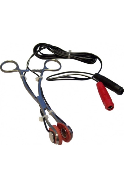 Deze klem is bipolair, elke kant van de mond is verbonden met één pool. Wordt geleverd met een 2,5 mm monojack (voor Hometech) of 3,5 mm monojack (voor Folsom). Voor gebruik met de Vitatronic heb je een adapter nodig.