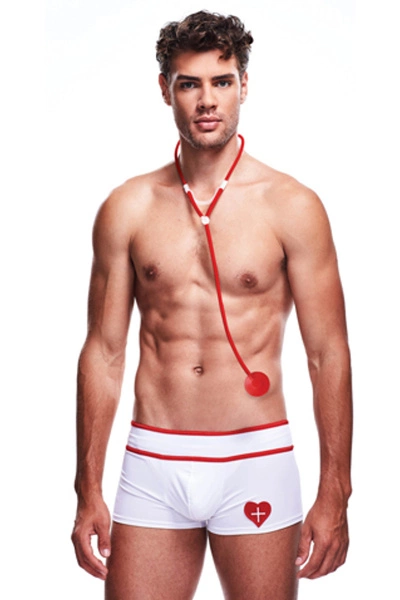 een bijpassende rode stethoscoop wat de look compleet maakt voor de ultieme fantasie!