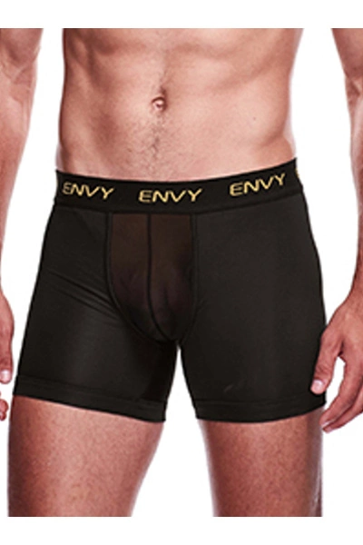 Als je houdt van een populair, goed gemaakt ontwerp, hoogwaardige stoffen en een slanke pasvorm, maar je een beetje aan de sexy kant voelt, voldoet ENVY MENSWEAR graag aan die behoeften! Deze klassieke lange boxershort, verkrijgbaar in zwart en wit, is ontworpen in een traditionele stijl met een brede ENVY-band en een transparant mesh-zakje voor een provocerende verrassing.