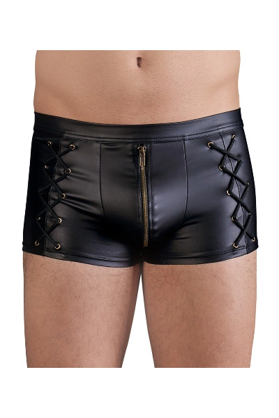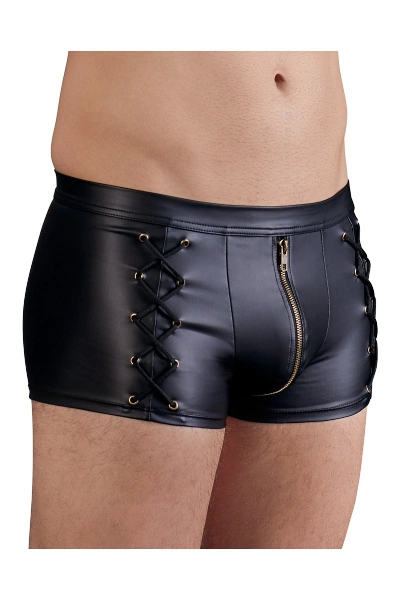 Delicate, zwarte broek met een gewatteerde messing ritssluiting aan de voorkant. Met opvallende vetersluiting aan de zijkanten. Nauwsluitende, elastische pasvorm voor een perfecte pasvorm.