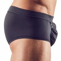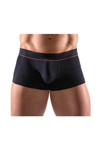 Zwarte, nauwsluitende broek van Svenjoyment met pikante rode streep onder de zacht geweven elastische tailleband. De buidel is in dubbele lagen gewerkt. Hoog draagcomfort dankzij perfecte pasvorm en elastische biokatoenen kwaliteit – Oeko-Tex gecertificeerd.