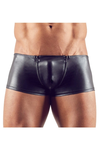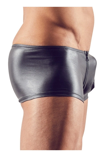 Zeer glanzende broek met een mooie ritssluiting aan beide kanten van de buidel. De contouren van de billen zorgen voor een warme achterkant.