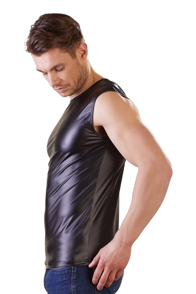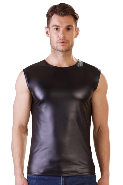 Deze zwarte top onderscheidt zich van de rest door zijn klassieke design dat je lichaam op een erotische manier benadrukt door zijn mooie matte look. Om de gaatjes voor de hals en armen zitten kleine steekjes. Deze top kan met alles en nog wat worden gedragen – hij mag absoluut niet ontbreken in de garderobe van een man.