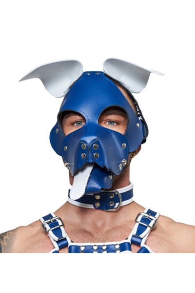 ister b leather circuit floppy dog hood – blauw wit