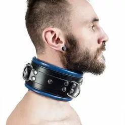 Leren Slavenhalsband Blauw Gevoerd