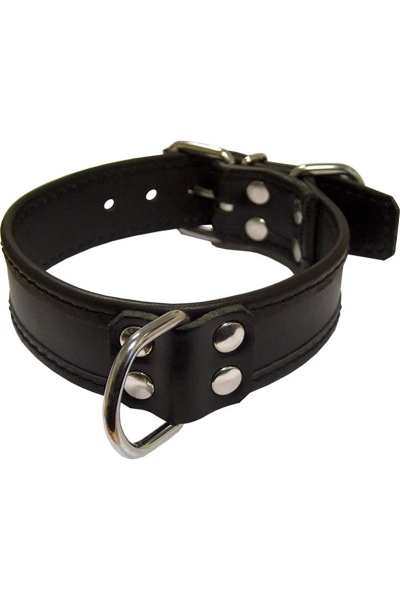 MisterB standaard slavenhalsband gemaakt van stug leer met D-ringen voor verschillende attributen. The collar is 50 cm lang, gemaakt van 0.5 cm dik leer, 3,5 cm breed.