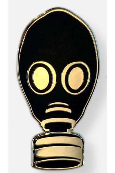 Hard geëmailleerde speld in goudtint en matzwarte details.