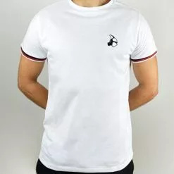The newest T-shirt design is made from high-quality piqué material, which is normally typical for polos. The slightly fitted sleeves feature a ribbed cuff with red and white tipping. The kinky embroidery will surely catch the eyes of likeminded guys.