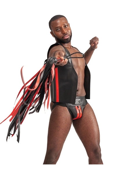 Mister b impact premium leren flogger – zwart – rood – 54 cm