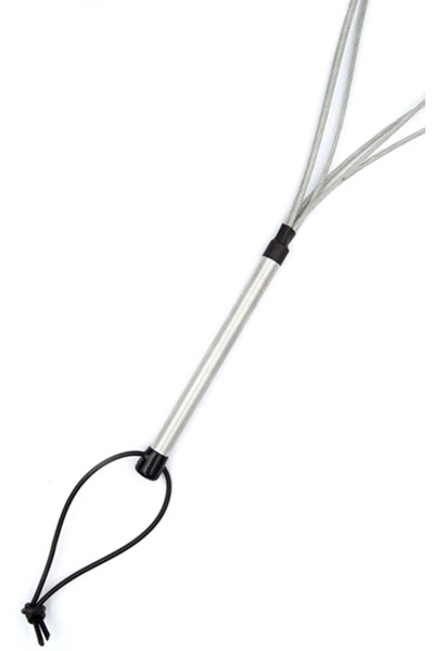 Deze 55cm lange staaldraadzweep heeft 3 ogen, Ø 3mm, rubber gecoat