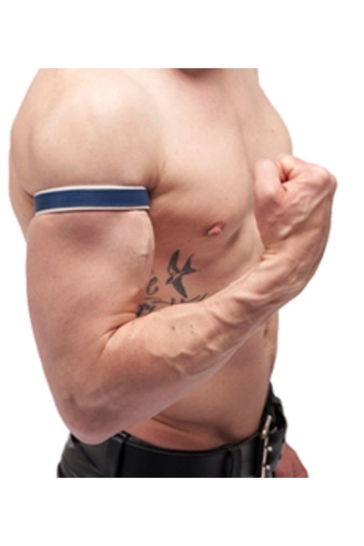 Complete your sexy look with these stunning Mister B Leather Circuit Biceps Bands! Now more colourful than ever, they are available in Blue and White or Red and Yellow. Bicep bands will accentuate your arm muscles as they squeeze in just the right spot. Express your personality or your fetish interests with this cool accessory and show them what you’re into by wearing it left side or right, or give them everything when you wear one on each side!