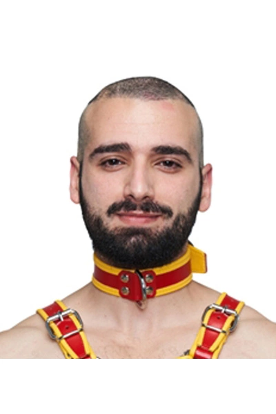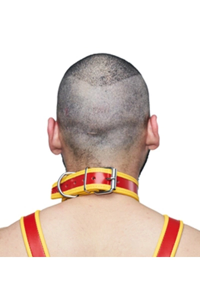 De Mister B Circuit Halsband in Rood en Geel maakt je set uit de Circuit Collectie compleet. Koop het bijpassende rood-gele harnas, polsportemonnee, jockstrap, hondenkap en korte broek om deze lederlook van top tot teen af ??te maken. Deze halsband heeft een sterke, standaard D-ring aan de voorkant, voor al je ketting- en lijnbehoeften. De stevige gesp aan de achterkant heeft voldoende maatopties voor zowel de grootste als de kleinste nek. Gemaakt van 100% echt tuigleer en aan de zijkant gevoerd met zachter leer, waardoor het voor iedereen zeer comfortabel is om te dragen en voor langdurig spel kan worden gebruikt.