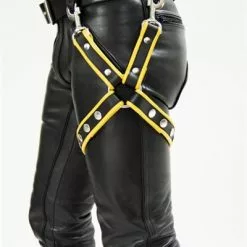 Dit leren beenharnas is het perfecte fetish item om te combineren met je regular jeans voor een casual leather look, of als extra feature bij je leren jeans.