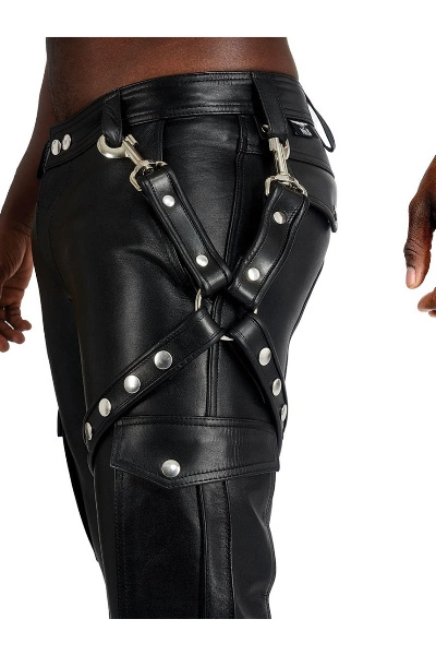 Dit leren beenharnas is het perfecte fetish item om te combineren met je regular jeans voor een casual leather look, of als extra feature bij je leren jeans.