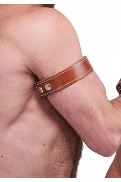 Maak je feestoutfit compleet met deze prachtige Mister B Brown Leather Biceps Bands! Gemaakt van 100% echt stevig tuigleer.