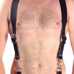 Dit is echt geweldig, je kunt nu een paar leren bretels en een leren harnas kopen voor 1 prijs !! Begin de avond met bretels over je shirt en als het zweterig wordt, maak je de riem aan de voorkant los, doe je je shirt uit, doe de riemen onder je armen en maak ze weer vast aan de metalen ring op je rug >> je hebt een fantastisch uitziend halterharnas aan de voorkant met 5 riemen die je rug bedekken ..