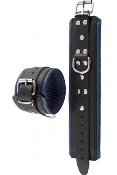 Deze leren enkelboeien worden per paar verkocht, zijn groot genoeg om over schoenen te dragen. Verstelbaar met gespen en voorzien D ring.