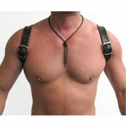 Dit harnas heeft een riem over je rug en past onder je armen en over je schouders. Gemaakt van hoogwaardig leer.