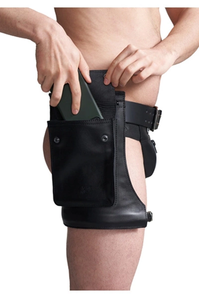 Geen zakken? Geen zorgen! De Mister B Leather Hip Holster is de juiste keuze. Deze hoogwaardige leren heuptas kan je spullen voor je dragen als je niet veel anders aan hebt. Bewaar je telefoon of portemonnee in deze zak om te voorkomen dat je strakke leren broekzakken uitrekken. Het is perfect voor die knik- of seksfeesten wanneer je geen kleding met zakken draagt, of ook geweldig met jeans, voor een coole, leren look. Kan worden gedragen met elke Mister B lederen riem.