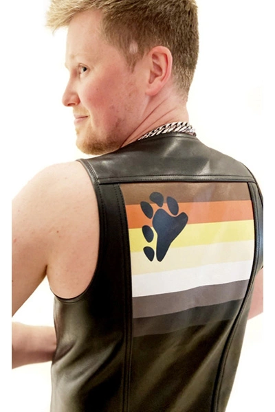 INSLAG! Hey grote jongens, deze is voor jullie! Laat zien wie je bent of waar je van houdt met de Mister B Leather Muscle Vest Bear . Draag dit klassieke leren vest met de Bear Pride-vlag op de achterkant en maak alle woofers en growlers tegelijk jaloers en geil. Dit leren vest van topkwaliteit gaat een leven lang mee op feesten en evenementen, verkrijgbaar in de maten t/m 5XL! Dat is een GROTE deal voor ons grote jongens!