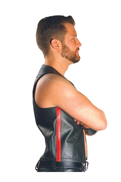Mister B leren muscle vest zwart met rode bies