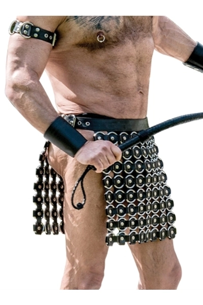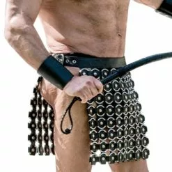 Mister B lederen O-ring rok is een geweldig uitziende feestoutfit voor iedereen die een gladiator-look wil creëren. Het bestaat uit twee panelen (voor- en achterkant) die aan de zijkanten vastzitten.