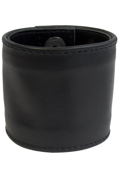 MisterB leren zwarte polsband met drukknopen, afgewerkt met een stiksel rand.