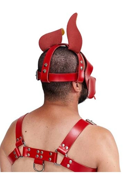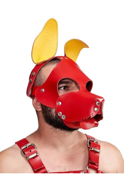Masker is gemaakt van stevig, soepel leer, uitgerust met een opklikbare en afneembare snuit.