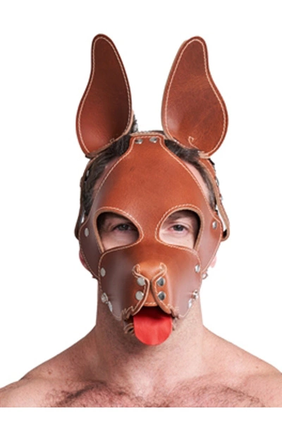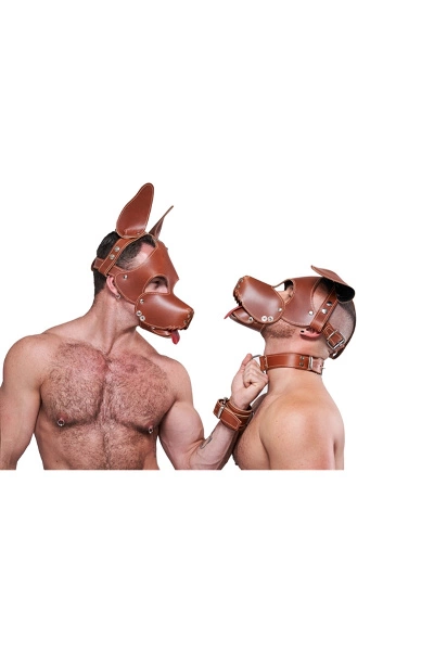 Deze pittige puppycapuchon is gemaakt van stevig maar soepel leer en is enerzijds voorzien van een klikbare kincup en anderzijds met een afneembare muilkorf om over de hele snuit te gaan.