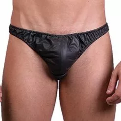 Een opvallende sexy en hoogwaardige string slip voor heren, gemaakt van zacht en soepel leer.