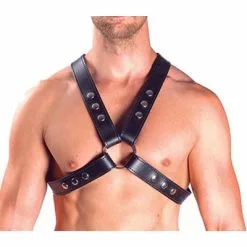 Stoer kruisvormig topharnas gemaakt van het hoogste kwaliteit leer.