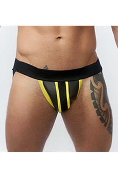 Deze Mister B neopreen jockstrap zit heerlijk, gedetailleerd om te gedragen. heeft gekleurde bindingen en mesh-accenten, ziet er fantastisch uit, ook onder jou chaps.