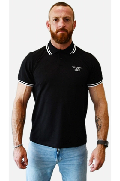 De Mister B Polo voor de klassieke bad-boy, punk look! Draag hem met een gebleekte jeans, legerlaarzen en bretels voor de complete fetish look. Of draag hem met je leren broek voor een knipoog naar de klassieke stijl. Kleed hem omhoog of omlaag, stop hem erin of laat hem weg, deze polo is veelzijdig en kan op veel manieren worden gedragen. Ook perfect om te dragen met je sportuitrusting of vrijetijdskleding! Het is niet alleen een cool uitziende top, maar hij is ook nog eens comfortabel. Met een slanke pasvorm ziet de knusse look er geweldig uit voor iedereen. Heeft twee knopen aan de bovenkant en twee gekleurde strepen langs de kraag.