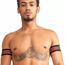 Niets maakt een blote arm sexyer dan een bicepsband! Nu kan iedereen dit leuke accessoire om de arm krijgen met de rekbare Mister B Urban Club Biceps Band! Draag het als je shirtloos bent, een tanktop of harnas draagt. Het is vooral perfect om te dragen met de Mister B Urban Club Harness X-back in de bijpassende kleur en laat alle jongens in de club over je kwijlen.