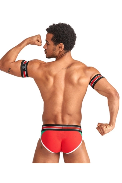 Deze merkarmband heeft de kenmerkende Urban zwart-witte streep met kleuraccent. De Mister B Urban Club Biceps Band is verkrijgbaar in vier verschillende accentkleuren: grijs, rood, blauw en geel. Draag de kleur die anderen laat weten wat je fetisjen zijn of draag welke kleur je maar wilt! Dat is het leuke – draag het zoals je wilt!