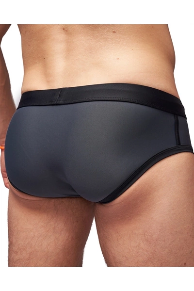 Deze zwemslip is gemaakt met een geweldig design. Met het kenmerkende Mister B URBAN push-up binnenzakje om op te pompen wat je hebt en een opvallend pakket te maken. Ze hebben een tailleband met trekkoord en zijn gemaakt van de fijnste stof, 80% polyester en 20% elasthan (lycra), waardoor ze een strakke, nauwsluitende pasvorm hebben zonder dat je ze opnieuw hoeft aan te passen. De zwarte en grijze kleurencombinatie ziet er geweldig uit op elke huidskleur en past bij alle andere strand- of feestaccessoires die je draagt. Het Mister B-logolabel links van de tailleband laat zien dat je zelfverzekerd bent en van kwaliteitsproducten houdt.