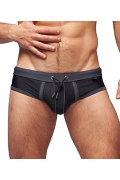 Deze zwemslip is gemaakt met een geweldig design. Met het kenmerkende Mister B URBAN push-up binnenzakje om op te pompen wat je hebt en een opvallend pakket te maken. Ze hebben een tailleband met trekkoord en zijn gemaakt van de fijnste stof, 80% polyester en 20% elasthan (lycra), waardoor ze een strakke, nauwsluitende pasvorm hebben zonder dat je ze opnieuw hoeft aan te passen. De zwarte en grijze kleurencombinatie ziet er geweldig uit op elke huidskleur en past bij alle andere strand- of feestaccessoires die je draagt. Het Mister B-logolabel links van de tailleband laat zien dat je zelfverzekerd bent en van kwaliteitsproducten houdt.
