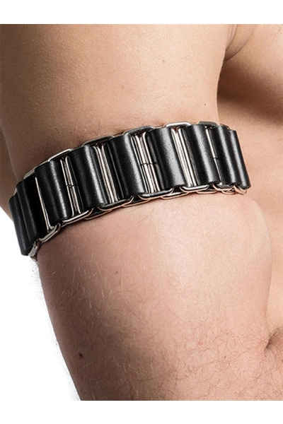 MisterB leren armband met metalen schakels, te dragen als sieraad om je arm.