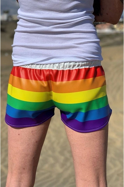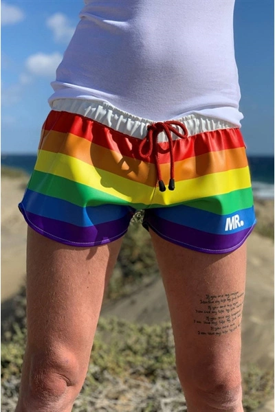 Deze short is regular fit en heeft regenboogstrepen, een trekkoord in de taille en heeft de MR. handtekening op het linkerbeen.