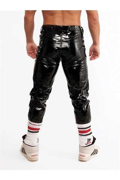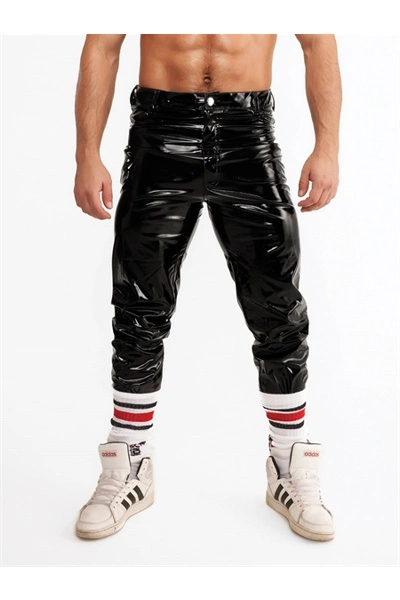 Glanzende PVC-broek, deze gladde broek is ontworpen door de creatieve Mr. Riegillio.