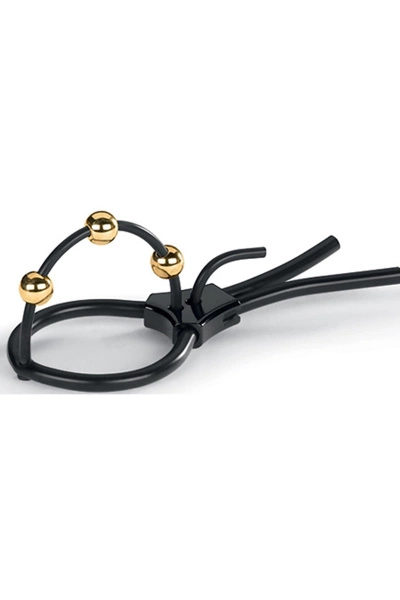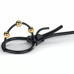 Voor de gefocusten: onze Pearly Pete wordt geleverd met drie vergulde ballen uitgelijnd langs de boog, hij spant over het topje van de penis – en waar ze de huid aanraken maken ze direct hun punt.