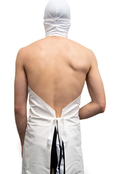 Dit geheel witte schort is geweldig om in een smerige speeltijd te komen met een gewillige kont die, net als jij, ervan houdt om de rotzooi te zien die ze maken. Creëer de slagerslook met rubberen handschoenen en al het gereedschap dat nodig is om je partner te laten kronkelen van extatische angst.