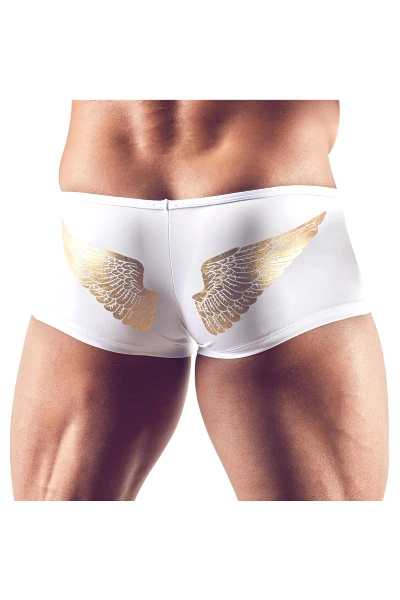 Microvezel broek met gouden engelenvleugels op de rug. De ritssluiting over de buidel maakt deze trendy look helemaal af. 92% polyester, 8% elastaan.