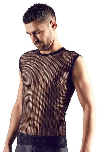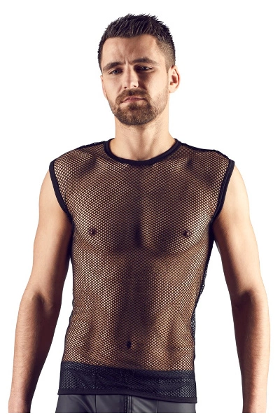 Alle ogen zullen op jou gericht zijn als je dit zwarte grof net overhemd draagt. Je lichaam en spieren worden op een heerlijk verleidelijke manier getoond. Met ronde hals. Met naden. 100% polyamide.